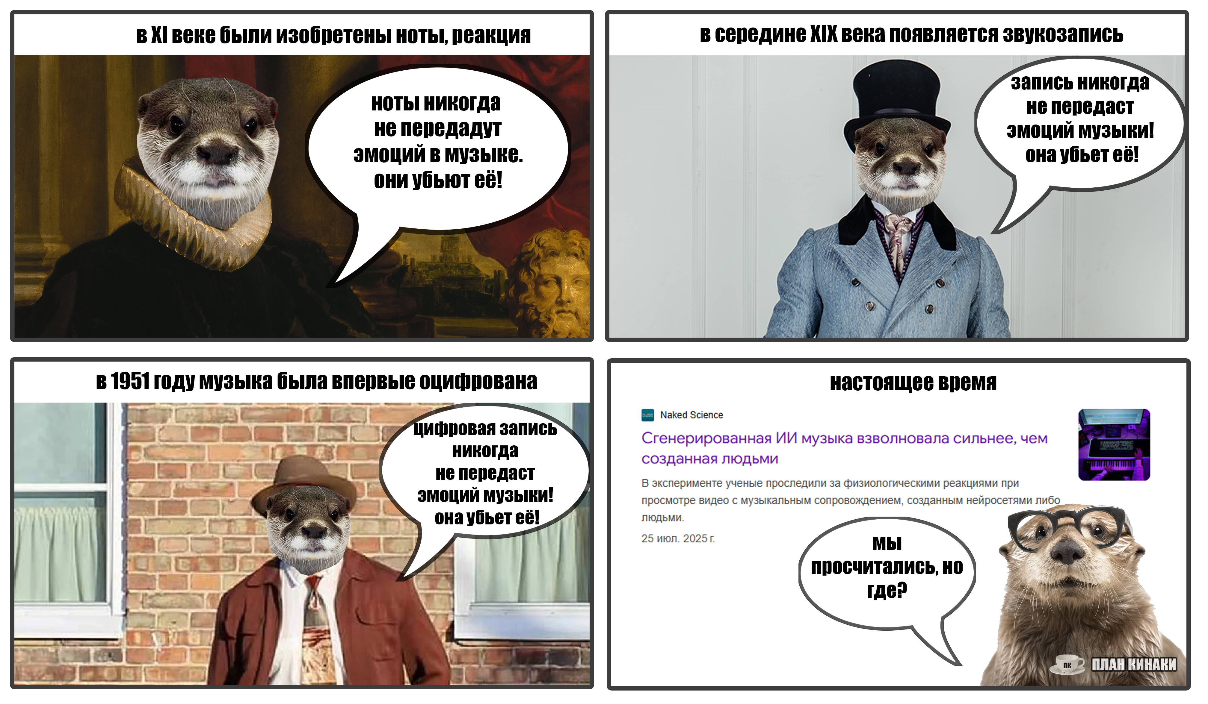 2025 — мой самый продуктивный год по количеству созданных мемов и комиксов (насчитал 229 работ). В этом году выдры активно интересовались информатикой, бизнесом и немного мышами. Много нового узнали о самом главном начальнике пельменного завода и работе в офисе, как никогда активно готовились к 1 сентября и отмечали пасху. Звонили по зуму, ходили в ресторан, опаздывали на работу, получали письма с историями от родственников из Бразилии, а по осени думали куда же девать кабачки. В общем, занимались почти тем же самым, что и люди, только немного по своему.