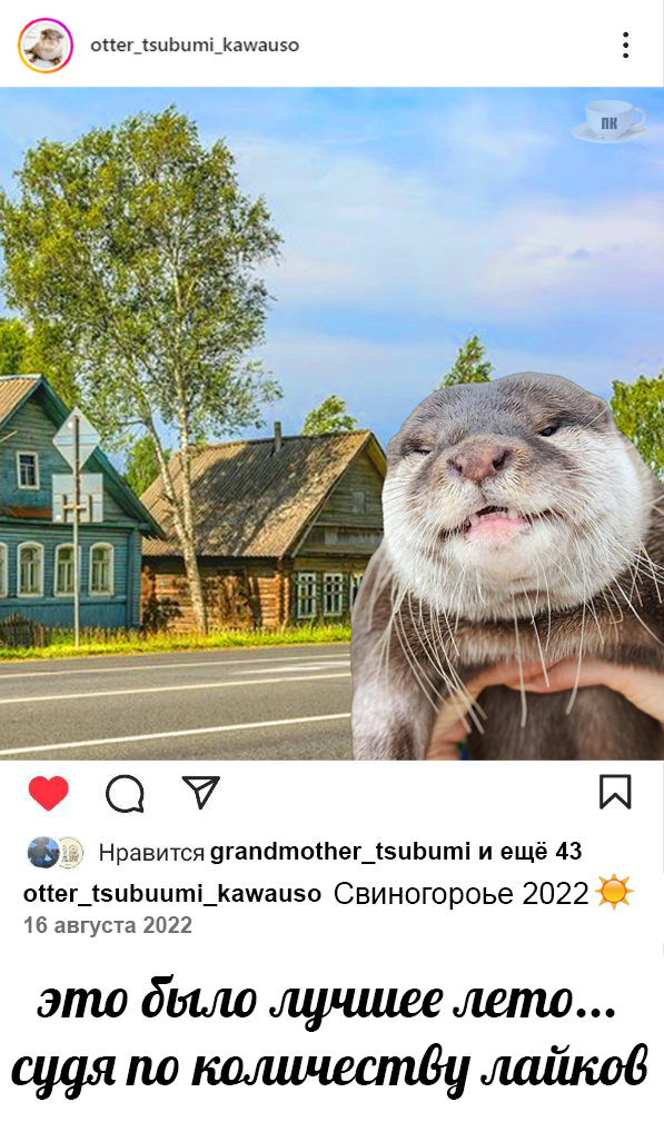 За год выдры побывали в совершенно разных местах: от космоса до города Чебоксары, успели попробовать разные роли, обыграли множество сюжетов и даже попали во вселенные Atomic Heart и Слово Пацана. Отличный и плодотворный был год!