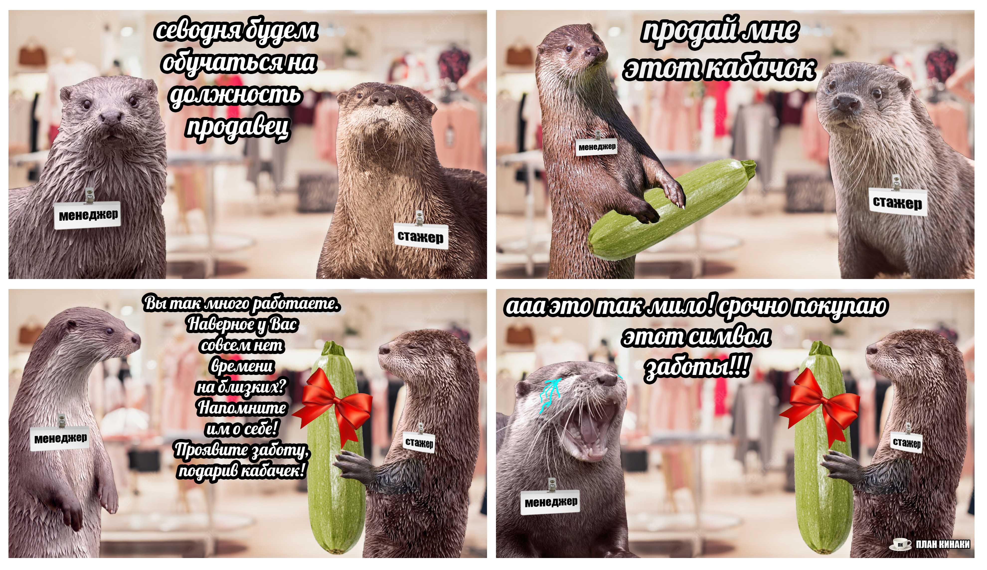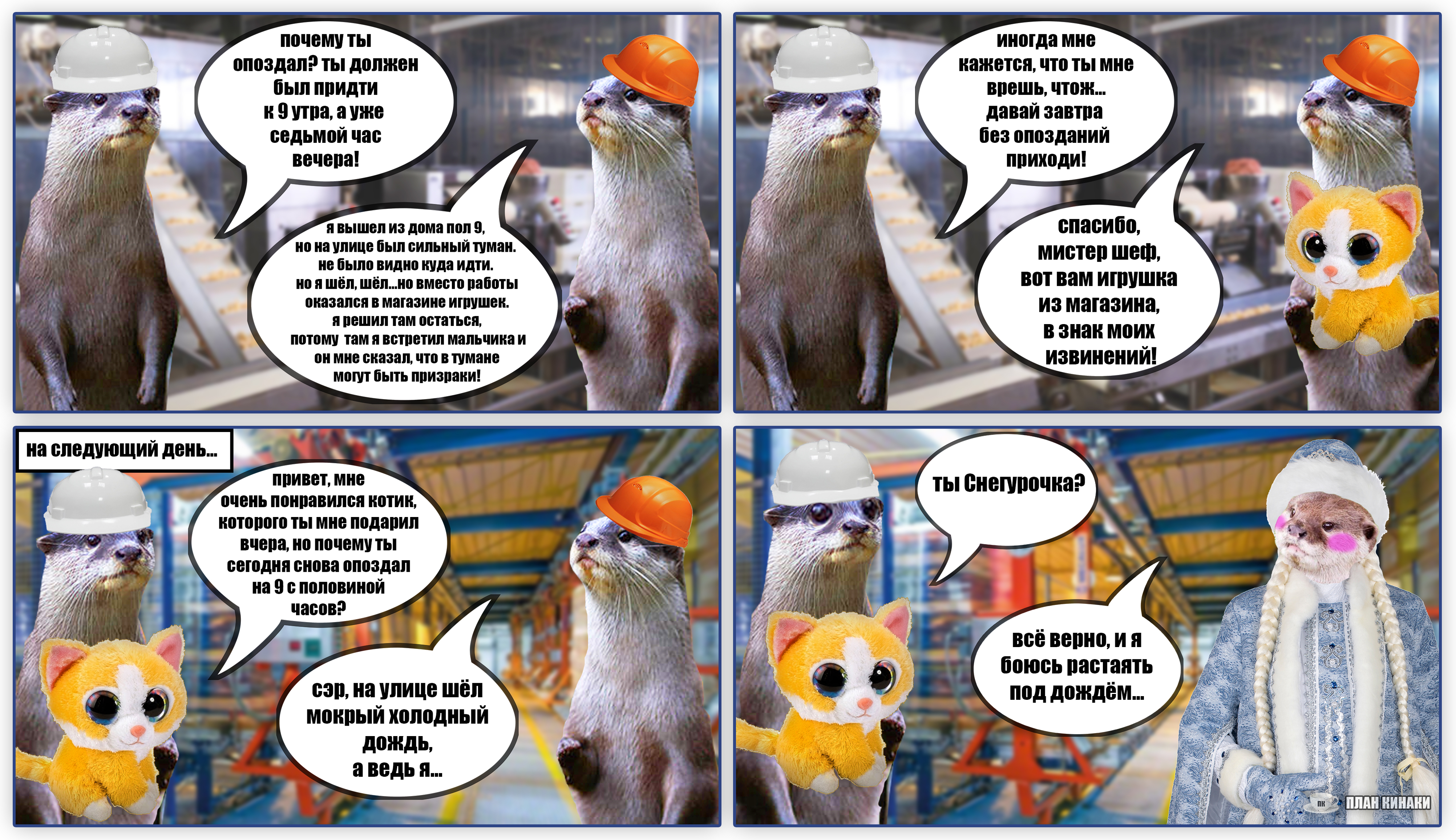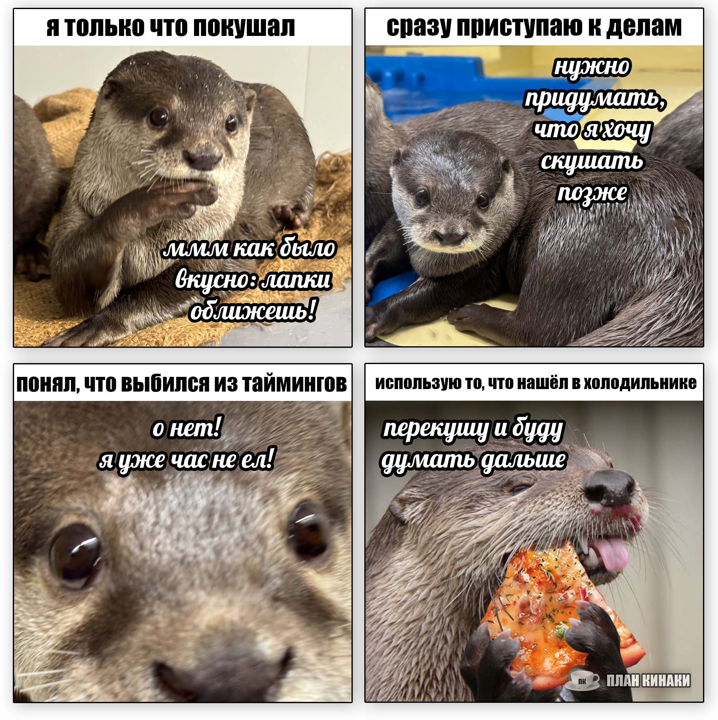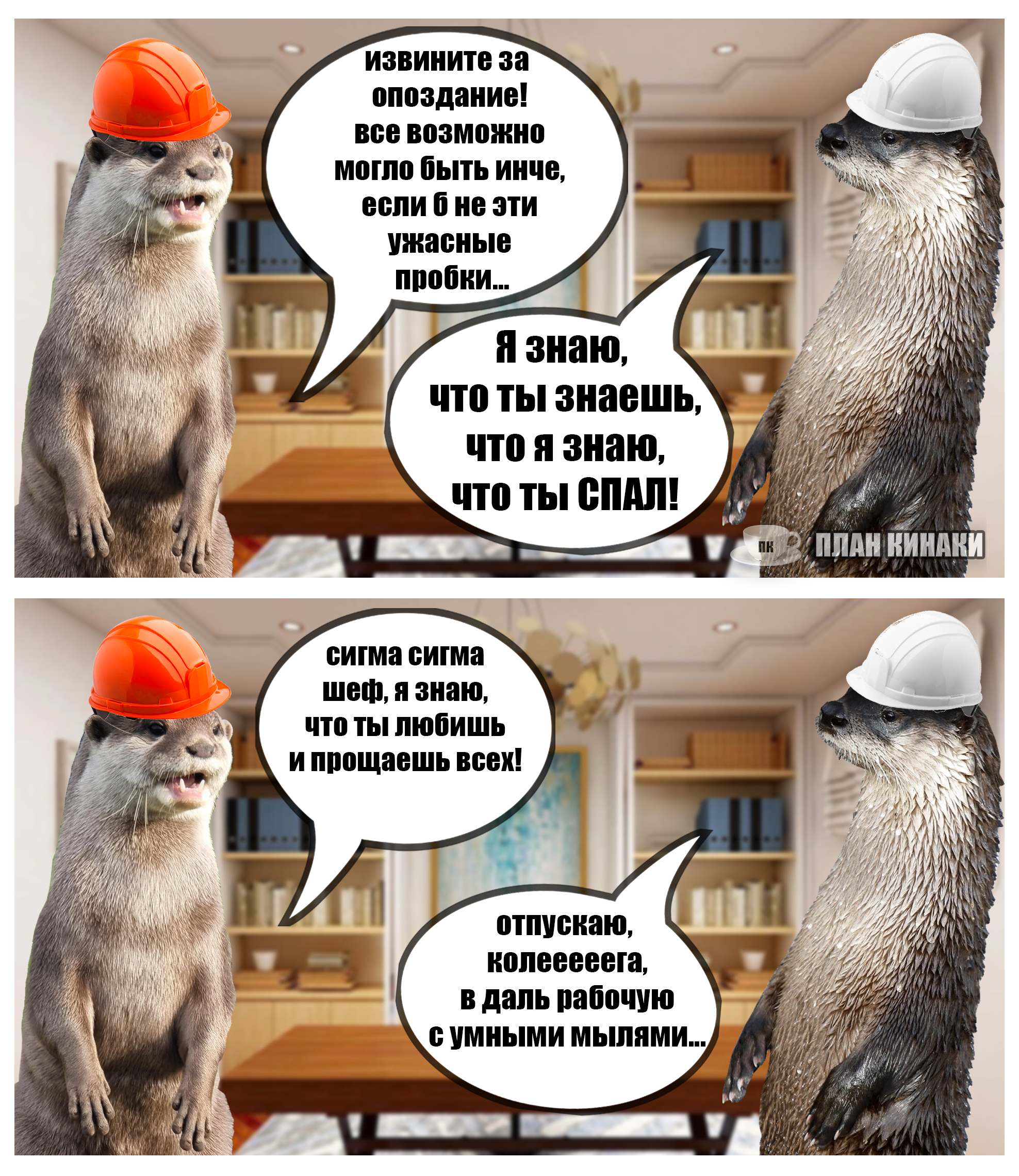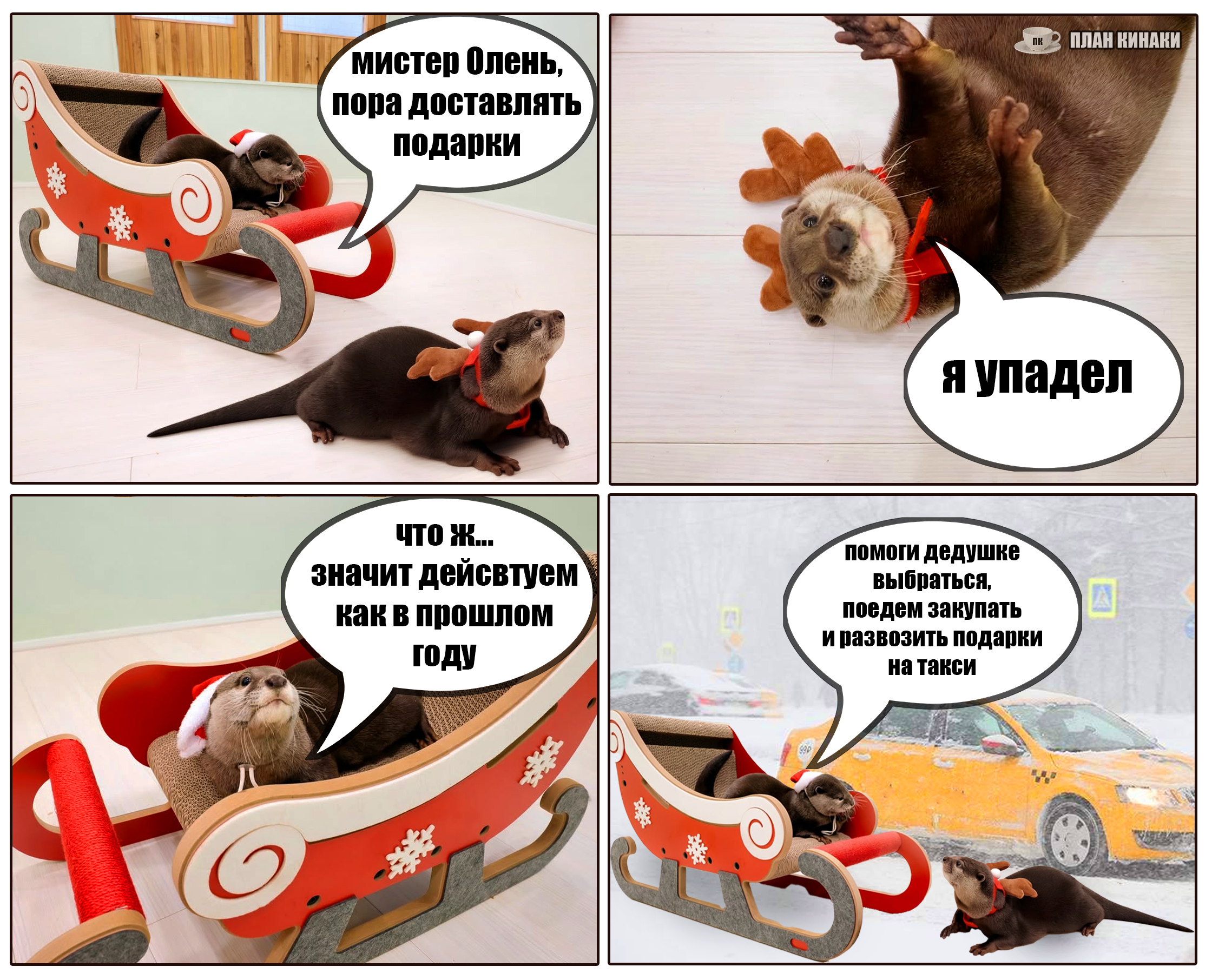 2025 — мой самый продуктивный год по количеству созданных мемов и комиксов (насчитал 229 работ). В этом году выдры активно интересовались информатикой, бизнесом и немного мышами. Много нового узнали о самом главном начальнике пельменного завода и работе в офисе, как никогда активно готовились к 1 сентября и отмечали пасху. Звонили по зуму, ходили в ресторан, опаздывали на работу, получали письма с историями от родственников из Бразилии, а по осени думали куда же девать кабачки. В общем, занимались почти тем же самым, что и люди, только немного по своему.