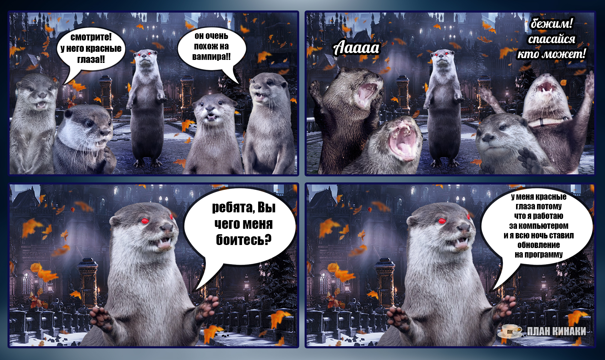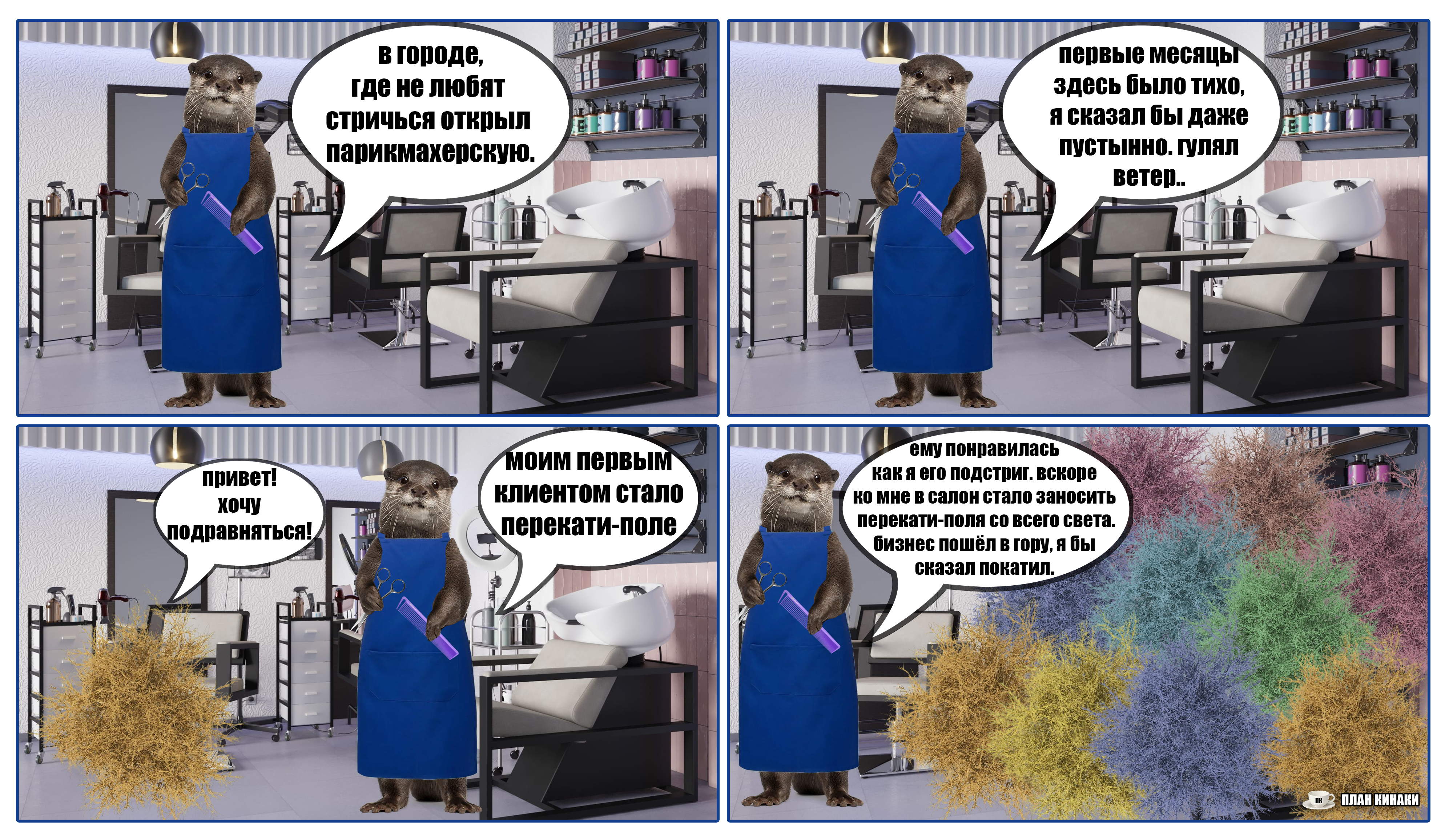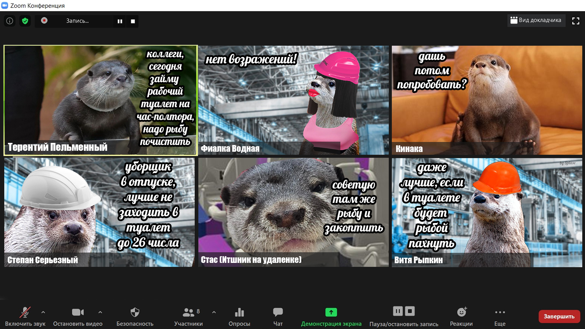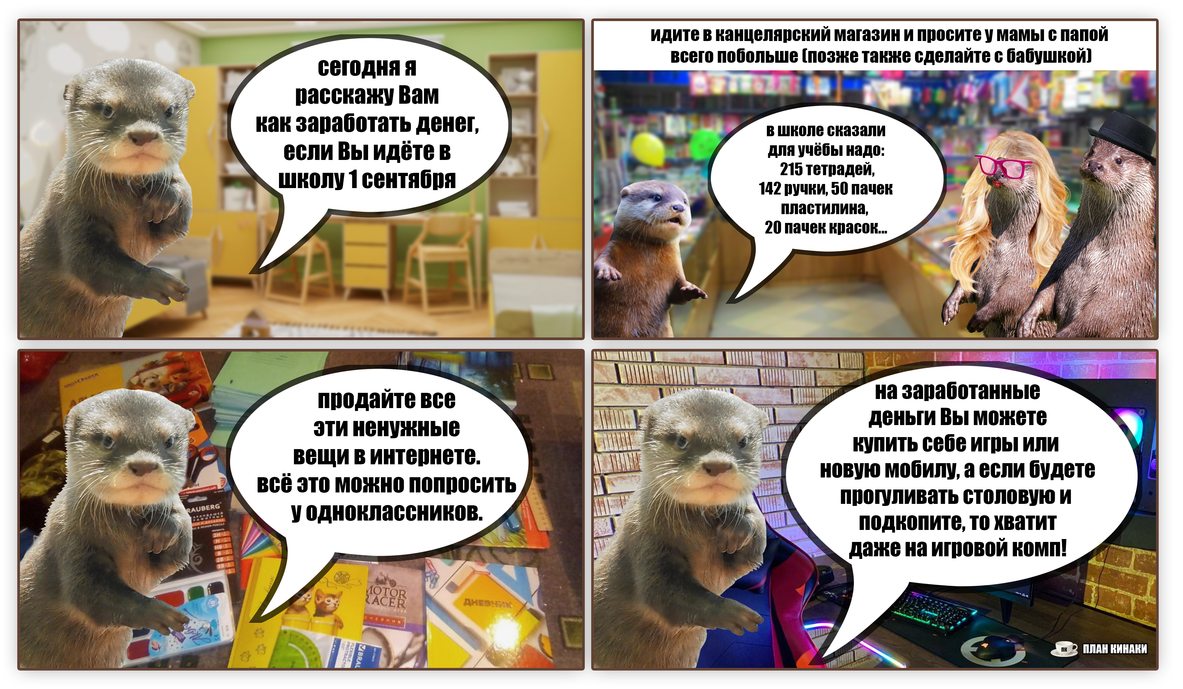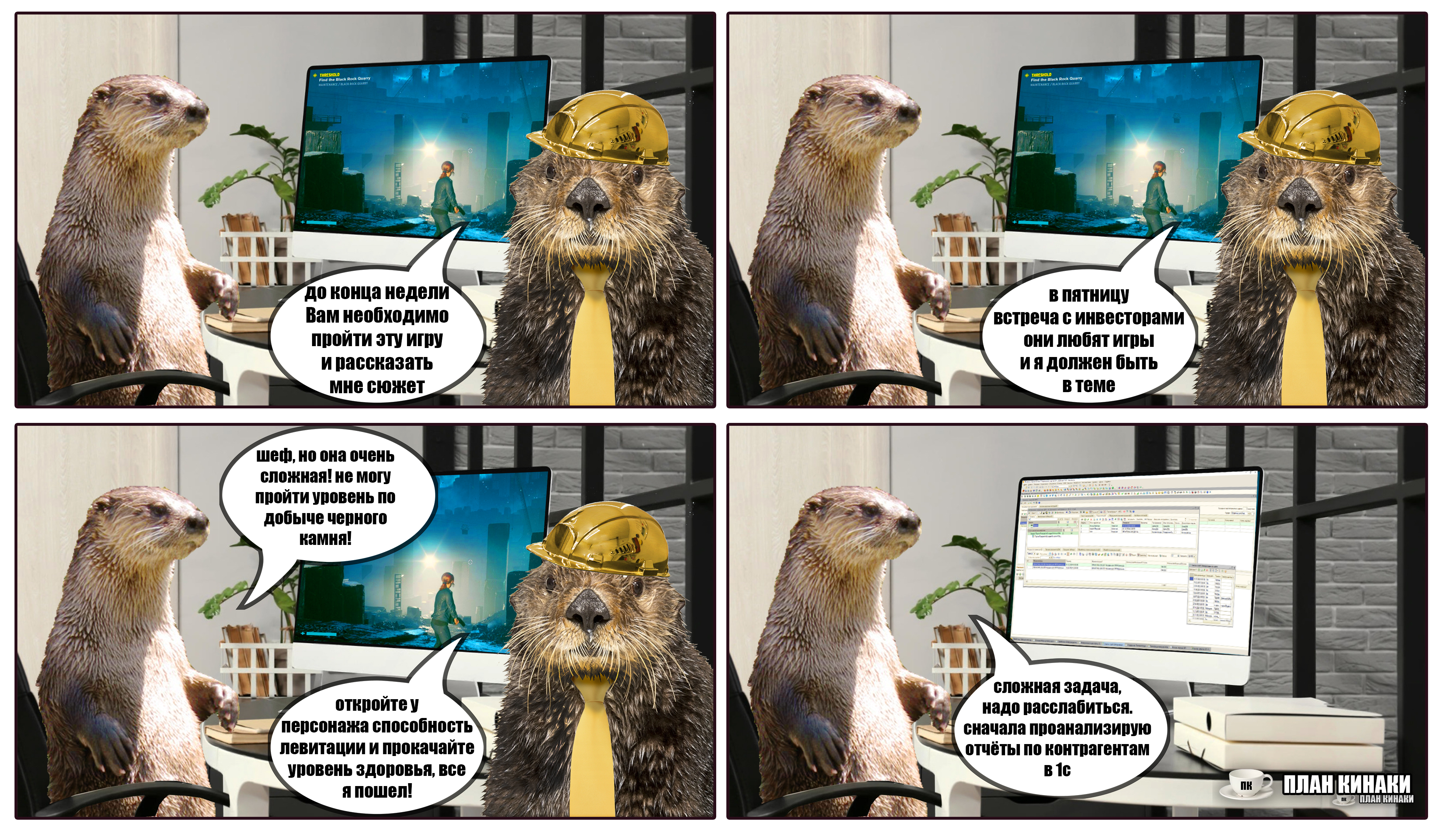 2025 — мой самый продуктивный год по количеству созданных мемов и комиксов (насчитал 229 работ). В этом году выдры активно интересовались информатикой, бизнесом и немного мышами. Много нового узнали о самом главном начальнике пельменного завода и работе в офисе, как никогда активно готовились к 1 сентября и отмечали пасху. Звонили по зуму, ходили в ресторан, опаздывали на работу, получали письма с историями от родственников из Бразилии, а по осени думали куда же девать кабачки. В общем, занимались почти тем же самым, что и люди, только немного по своему.